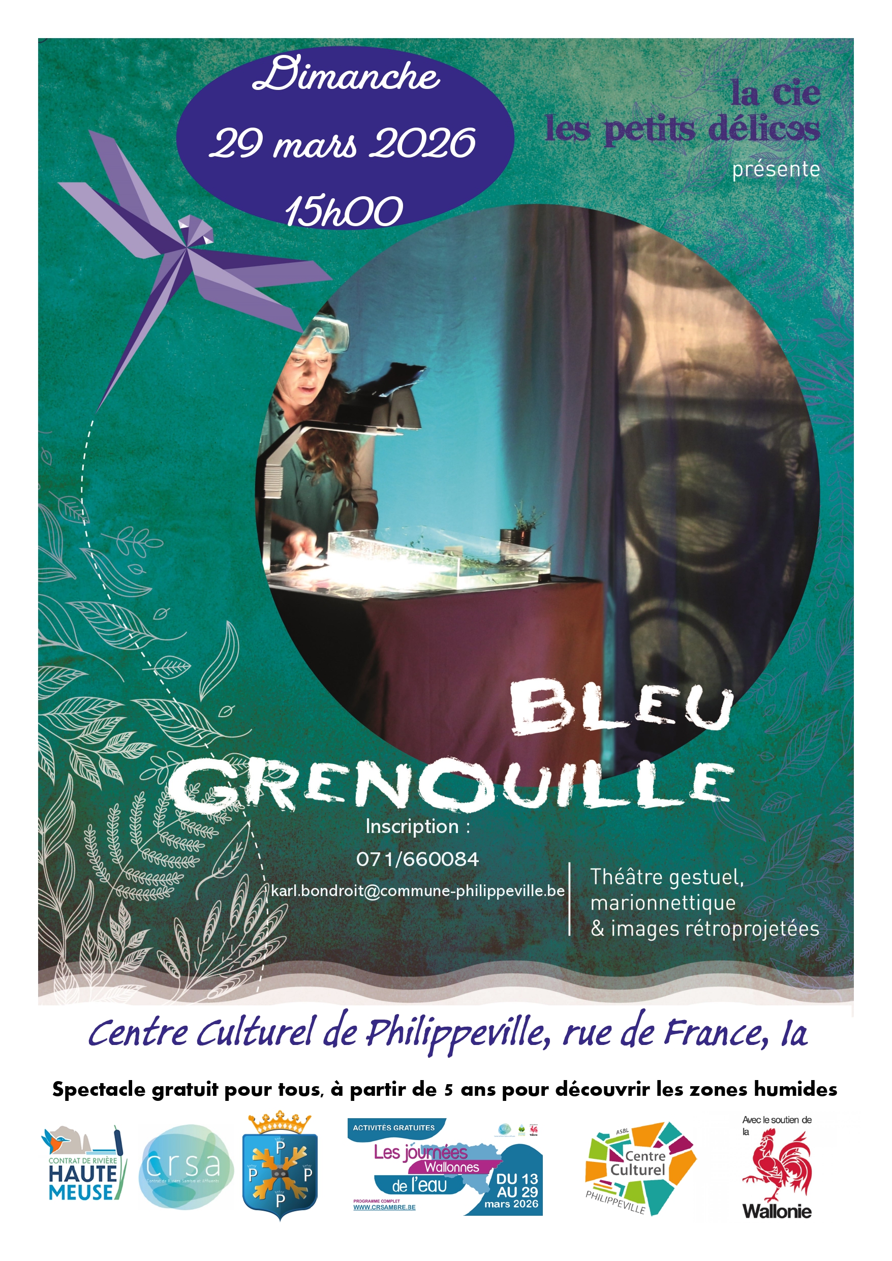 Centre culturel de Philippeville Rue de France, 1, Philippeville, BelgiumActivité culturelle Bienvenue dans le monde coloré et singulier des zones humides ! Des écosystèmes assez peu connus, figurant pourtant parmi les plus riches au monde, véritables puits de carbone, qui ont disparu de 60% depuis 1960. (Soit trois fois plus vite que nos forêts…) . Bleu c’est ainsi que l’on surnomme cet enfant du […]